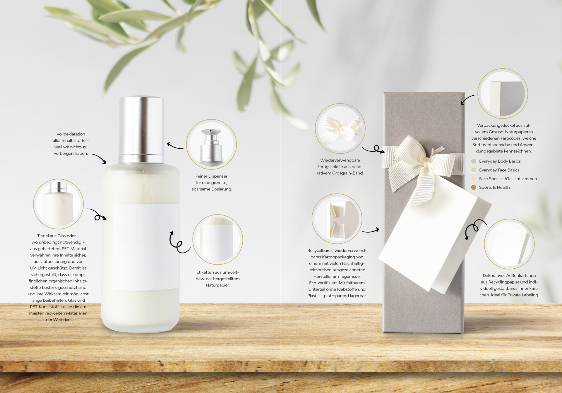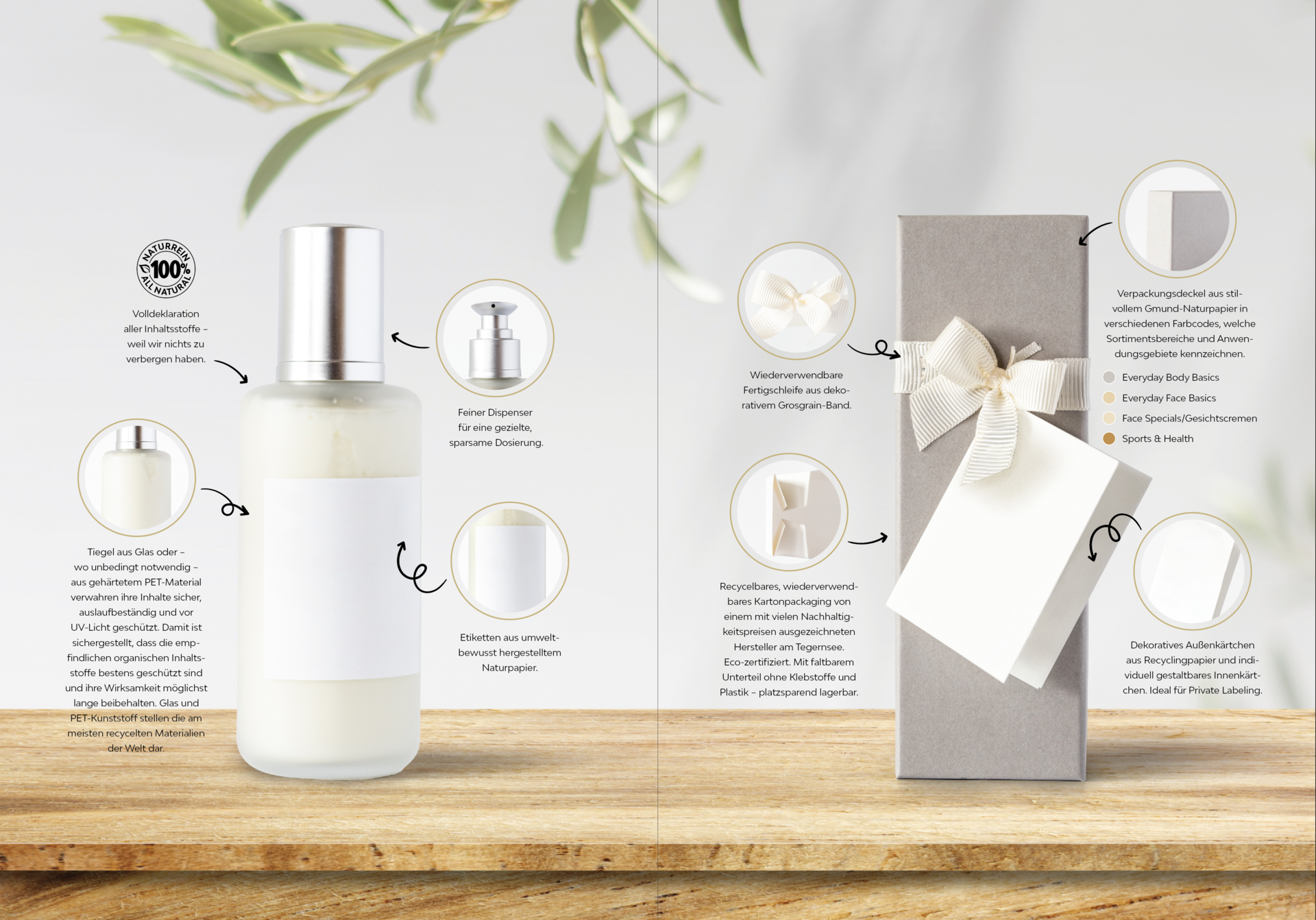 Tutti i prodotti del Kaufhaus der Berge vengono imbottigliati e confezionati in loco. Utilizziamo flaconi e barattoli in vetro riciclabile o HDPE (polietilene ad alta densità) riutilizzabile. Dispenser riutilizzabili, cartellini realizzati a mano, minimo di plastica e imballi esterni completano le caratteristiche esteriori del prodotto. Anche per le spedizioni l’Kaufhaus der Berge punta su carta e cartonati naturali e materiale riempitivo ottenuto da materiale d’imballo triturato.